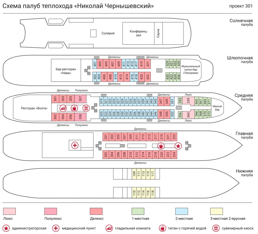 В стоимость путевки входит: проезд по маршруту рейса, проживание в каюте выбранной категории, 3-х разовое питание по заказной системе, страховка от несчастного случая на борту теплоход «Чернышевский», вечерние и дневные анимационные программы для взрослых и детей.