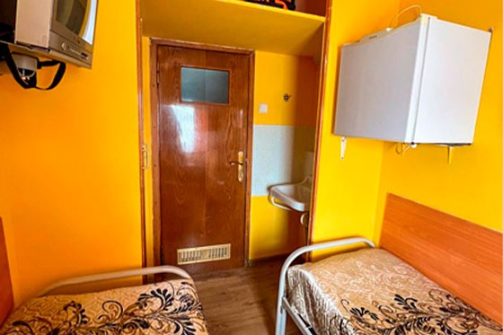 К категории Б2н относятся каюты: 002–012, 017. Двухместная каюта с частичными удобствами, расположенная на нижней палубе. В каюте: две односпальные кровати, раковина, столик.