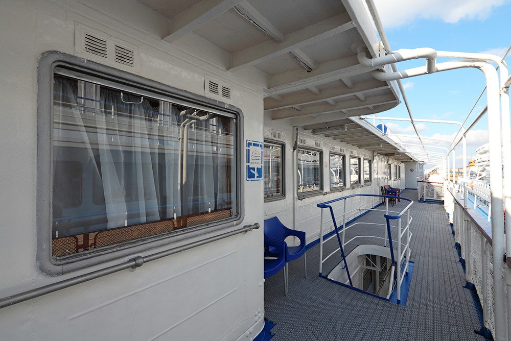 К этой категории относятся каюты: 101–121, 123. Двухместная каюта с частичными удобствами, расположенная на главной палубе. В каюте: кровать, раковина с горячей и холодной водой, кондиционер, телевизор, столик, шкаф.