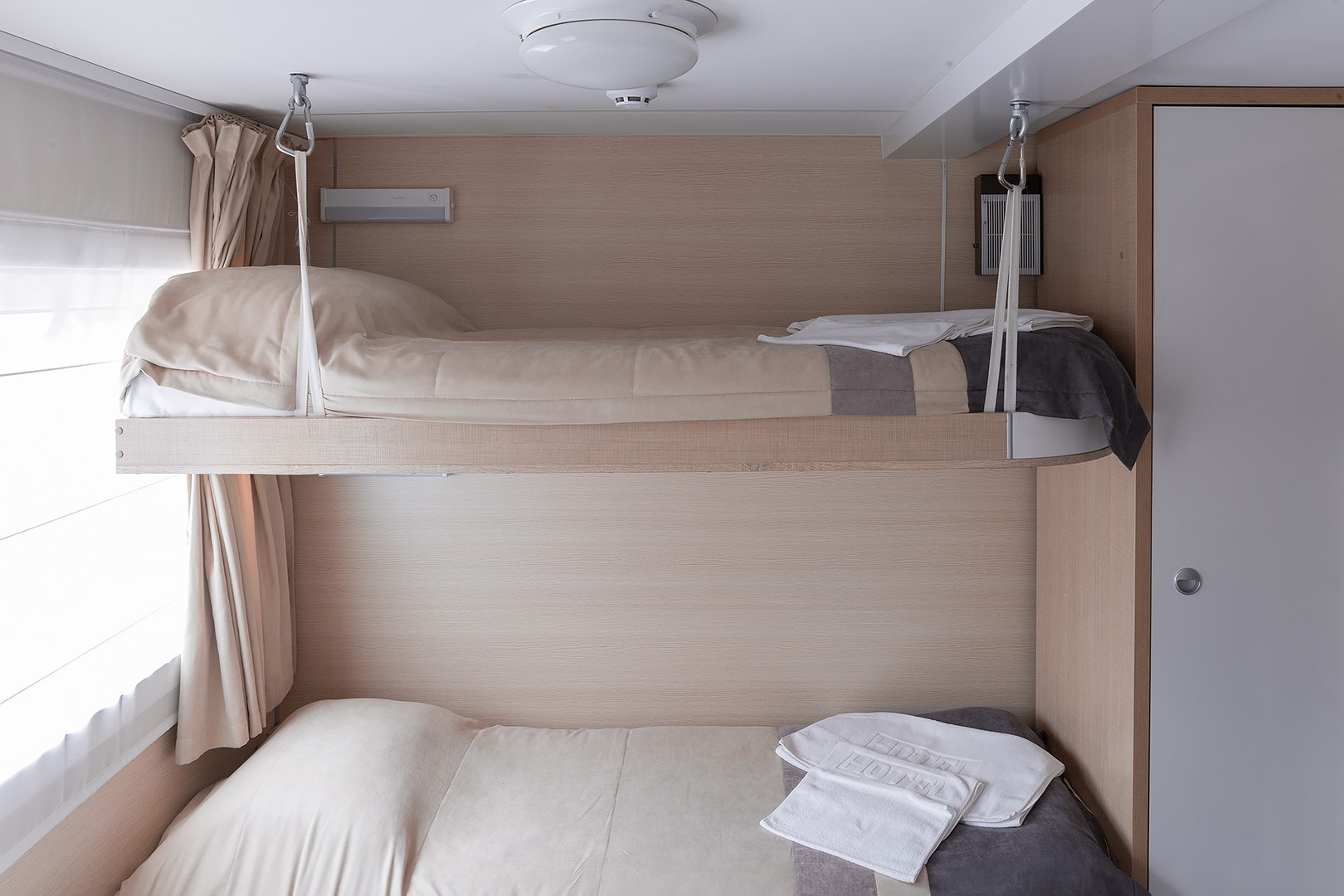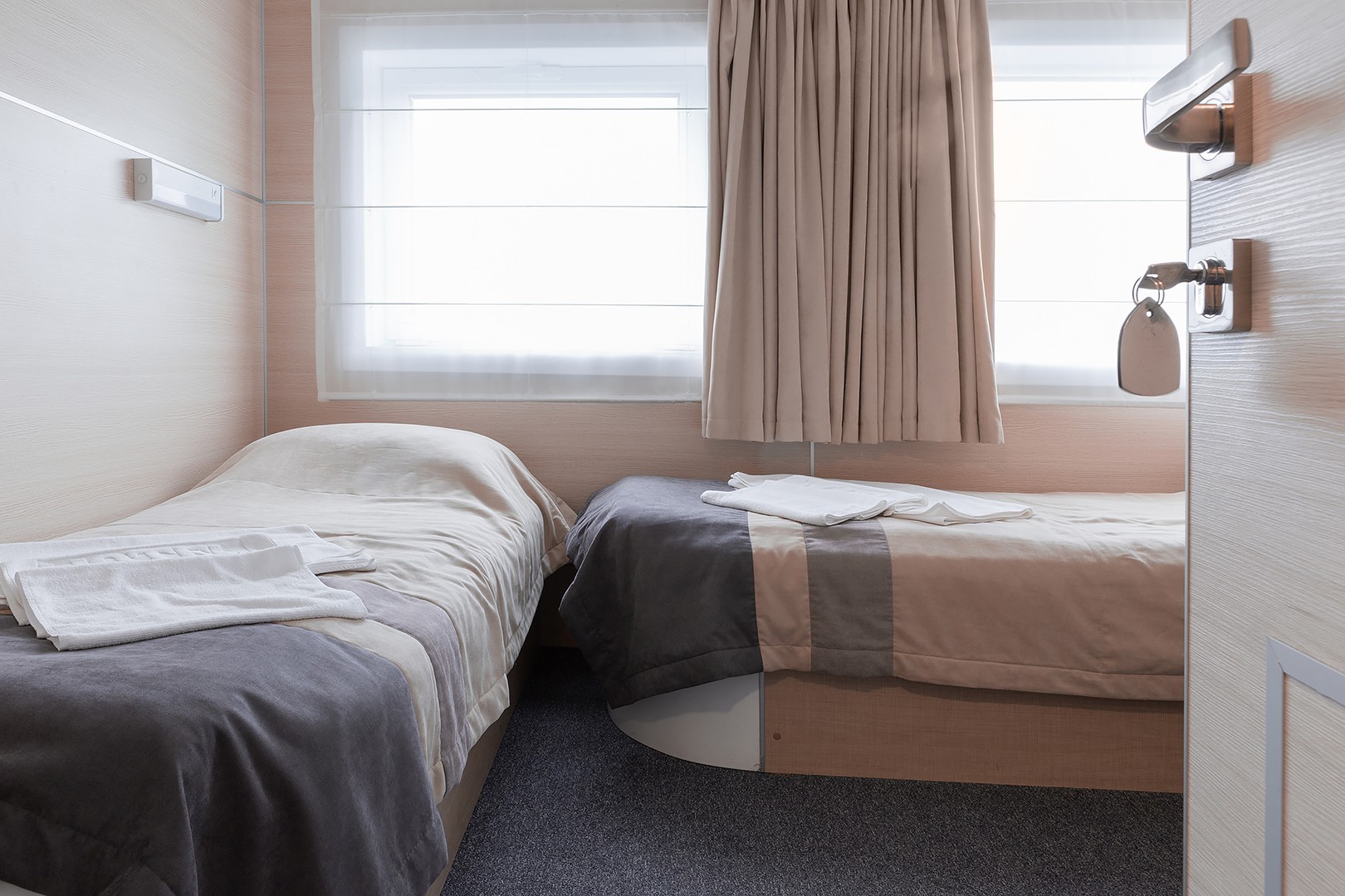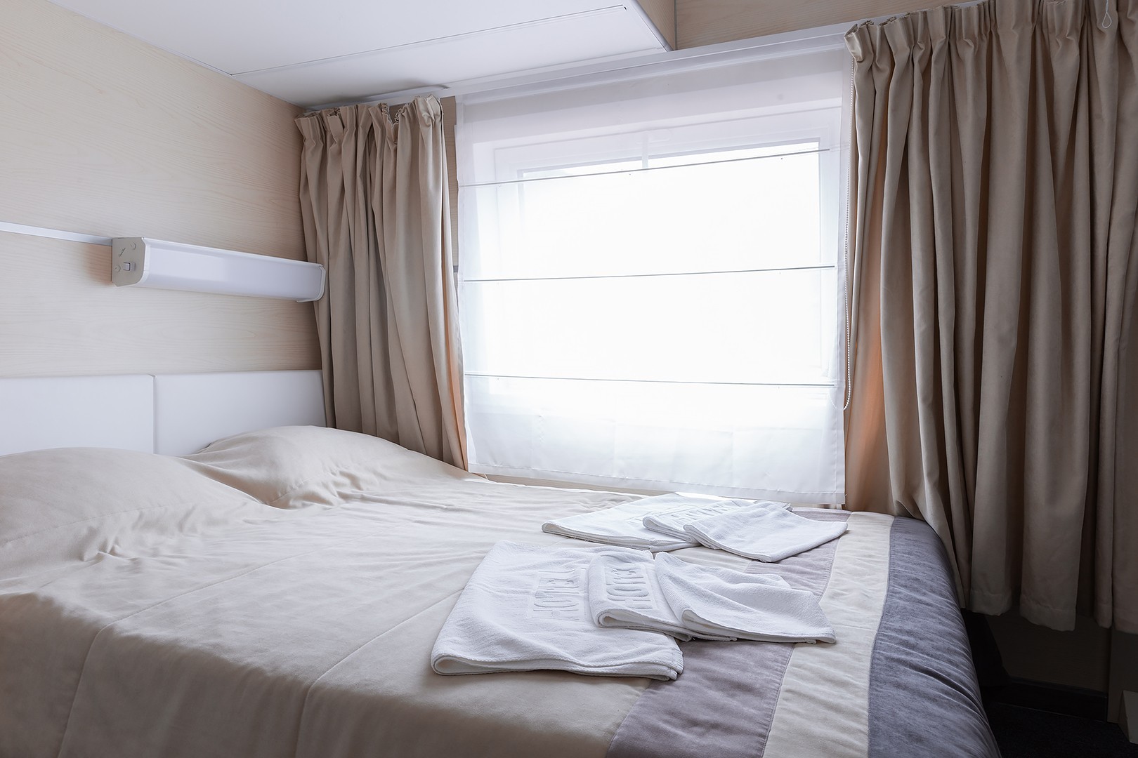 К категории Двухместная (twin) относятся каюты: 3–7. Двухместная каюта со всеми удобствами, расположенная на главной палубе. Площадь каюты ≈ 8 м². Размер кровати – 80х200 см.